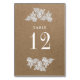 Elegant White Lace Flowers design with Kraft Paper effect background Personalized Wedding Table Number Cards. Matching Wedding Invitations, Bridal Shower Invitations, Save the Date Cards, Bridesmaid To Be Request Cards, Thank You Cards, Wedding Favours and Gifts available in the Vintage Design Category of our Store.