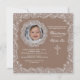 This milk-chocolate background invitation has a dainty white, lace border and a lace photo window. Featured here as a christening invitation, it is well-suited for most occasions. The cross can be dragged to any location, made larger or smaller or eliminated.
