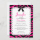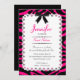 Lace w/ Hot Pink & Black Zebra Stripes Sweet 16 Invitation