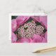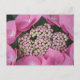 This postcard features a zoomed in image of a gorgeous pink lace cap hydrangea blossom!
