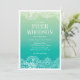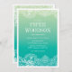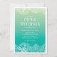 Delicate lace borders create a modern and pretty lingerie shower invitation. Colours are aqua, green and blue ombre.