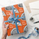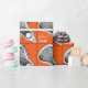 Lacrosse gift wrap or party decoration paper featuring lax stick design and happy birthday line on an orange background. To personalize, edit text to add name of lax player, coach, or team sports fan.