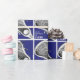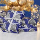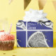 Lacrosse gift wrap featuring lax stick design and happy birthday line on blue background. Edit text to add name of player, coach or team sports fan.