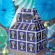 Unique lacrosse party, senior night or sports event favour box featuring lax sticks illustration design pattern on blue background.