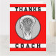 Lacrosse coach thank-you card featuring lax stick art on red background. To personalize edit text to add name or otherwise customize.