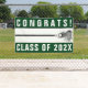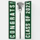 Creative lacrosse team banner featuring lax stick and congrats line design on green background. To customize edit text to add year.