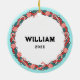 Unique lacrosse Christmas keepsake gift featuring cartoon Santa with a lax stick. To personalize edit text to add name and year.