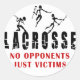 Lacrosse Gifts: Buy this No Opponents Just Victims Gift for that special someone. This No Opponents Just Victims Gift can be given at Christmas, Birthday, Valentines Day or any other special day of the year. Think about a gift of Lacrosse cards, buttons, stickers, mouse pad, key chain or cap. Lacrosse Rocks! Descriptive Words: Lacrosse, High School Team, Youth Lacrosse, LAX, STX, Lacrosse Hooded Sweatshirt, Boys Girls Lacrosse Team