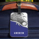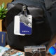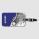 Unique lacrosse gear bag tag featuring lax stick design illustration on a blue background. Edit text to customize.