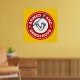 Lacrosse design - Armed and Dangerous poset. Circular emblem lax design of muscular arm with glove holding lacrosse stick. Red and Yellow version. Cool unique lacrosse gift for lacrosse players and fans.