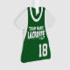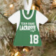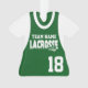 Maillot de sport d'équipe de crosse de filles vertes et blanches avec nom et numéro d'équipe.