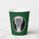 Unique lacrosse party or game day cups featuring lax stick art on green background for team events and senior night.