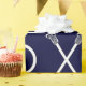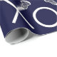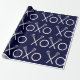 Creative lacrosse gift wrap or sports event decor featuring lax sticks and xo pattern on navy blue background.