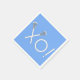 Creative lacrosse party or event napkins for team player, coach or sports fans who love game day, senior night or birthday party featuring lax sticks xoxo love on light-blue background.