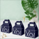 Creative lacrosse party or team sports event favour boxes featuring lax sticks design on navy blue background.
