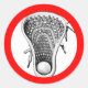 Lacrosse gift stickers and party favour labels featuring lax stick and ball design for lacrosse player, coach, and red team sports fans.