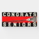 Lacrosse congrats design featuring a lax stick on red background. Edit text to customize for lacrosse party, sports event, game day banner, senior night or team tryouts.