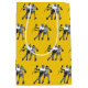 Unique lacrosse gift or party favors bag featuring lax players pattern on yellow background.