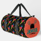 A Lacrosse Patterned Colourful Duffel Bag For The Sports Game Designed In Black And Orange