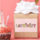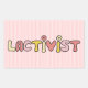 Pink and yellow hand-drawn letters spelling out "LACTIVIST". You can change the colour of the background by customizing the product and choose "Edit" and then background colour.