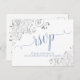 Lacy Calligraphy Light Blue on White Wedding RSVP Postcard
