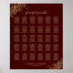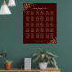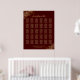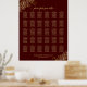 This beautiful wedding seating chart features a simple yet elegant design with a chocolate brown or auburn background, gold faux foil frills or floral filigree in the corners and a script calligraphy title reading "please find your table." The chart has table assignments for 300 guests at 30 tables (10 seats per table.)