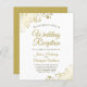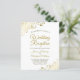 These affordable, budget friendly invitations are designed for guests who are invited to the wedding reception but not the ceremony. The design features a white background with ornate gold frills in the corners. The typography includes fancy script lettering for a style that is at once simple and elegant. Perfect choice for elegance, class, style, and beauty on a budget.