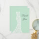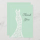 A romantic lace wedding dress accents this thank you on a pretty mint green background. Scroll down to see coordinating items in the collection.