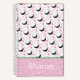 Ladies Golfing Notebook/Journal in Pink, Green and White. Golf Balls, Tees with crosshatch accent at bottom and customized name. Can easily personalize name, text colour. Fun gift the lady golfers in your life! Mix and match our entire GOLF collection by TMCdesigns.