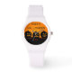 Black pumpkins with orange background, Sporty White Silicon Watch