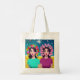 These bags were super cute (I purchased 3). The material is more of a canvas look & feel. The colour of the bag is slightly off white, but the letters look exactly as pictured. I took 3 photos in different lighting. Would recommend! I liked how there was an option to choose the font and colour of the name. The words are legible and the colours are exactly as pictured.