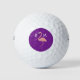 Trendy ladies personalized golf balls with monogram name initials you can personalize online and stylish pink flamingo on a pretty purple background. Designed for ladies who enjoy playing the game of golf as an executive or with friends and family.