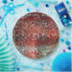 Imagem de pequenos quadrados tipo pixels que lembram uma parede de ladrilhos ou cerâmica vermelho, porém, com muitas manchas e pequenos respingos que parecem manchas e borrões de tinta spray.