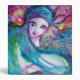 Colourful ,whimsical ,unique, artistic watercolor painting in bright aqua blue ,green,teal,pink,fuchsia,white ,sparkling iridescent colours,golden and silver foil, inspired from Carnival of Venice.2009.