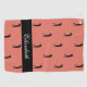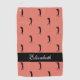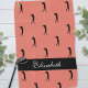 Design features a repeating pattern of a solid black silhouette of a female golfer on a trendy orange blush beauty background. A thick black band showcases custom name or text in stylish white script. Customize colours or keep as created. Colour of background and fonts are easily changed in design tool section. Email me at beachpausedesigns@gmail.com if you have questions about this or any of our designs!