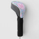 This customizable ladies golf head cover features pink and blue hand drawn flowers with a personalizable monogram. It's a stylish pink accessory that would be a good gift for any woman who plays golf.