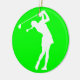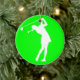 Ornament with a silhouette of a lady golfer in action. Available in different colours and on other products at my store.