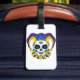Get ready for your Mardi Gras party with this colourful Lady Jester skull with fleur de lis, jewels and heart.
