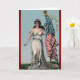5” x 7” greeting card with a vintage image of Lady Liberty standing on green grass in a long, flowing white gown, holding an American flag on a pole in her left hand with a gold American bald eagle finial. The inside customizable sentiment reads “With a true national spirit of courage, integrity, sacrifice, liberty and independence, I wish you a Happy Independence Day.” See matching confetti, round sticker, rectangular sticker and wrapping paper. See the entire Independence Day Greeting Card collection under the CARDS & STICKERS category in the HOLIDAYS section.