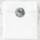 Round sticker with a vintage image of Lady Liberty wearing a flowing white gown and holding an American flag with her left hand. See matching rectangular sticker, greeting card, confetti and wrapping paper. See the entire Independence Day Sticker collection under the CARDS & STICKERS category in the HOLIDAYS section.