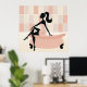 Beautifully decorated poster print, in pink and white. Containing the shape of a lady sat on the bath, in a pink towel. Simple but effective art for your bathroom.