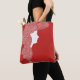 Totally thrilled with this bag. The material is thick and durable (this is my third purchase of this tote bag). The printing turned out amazing. The bright red was just as bright as it is on the computer. So impressed with this bag.