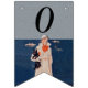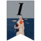 This flag shaped bunting banner has a lady in a white suit standing by the ocean with boats in the background holding a black Scottish Terrier Dog. Customize the Happy 40th Birthday text with the templates.