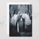 The digital illustration depicts a beautiful young lady with a with red curly hair. She wears a long dark cape and the seals of a knight, and she holds a shining sword in her hand. With the other hand she hugs a calm white horse with a magical beautiful mane. They are surrounded by a mysterious evening forest. Black and white colour palette.