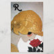 Vibrant ,classy French Art Deco high fashion illustration. Portrait of a beautiful young woman wearing a golden hat with flower, black white ,yellow ,grey colours .Cool ,modern and artistic design.