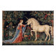 Medieval Licorne lady tapestry in a flower garden.