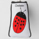 This ladybug design golf club head cover is an accessory that you slide over the head of a golf club for protection against knocks whilst sitting in your golf bag. Made out of polyester, cotton, and marine vinyl with a choice of different piping colours. You can customise this golf club head cover with any text. You can also change the background colour by clicking on the edit this design button. Should you require any help with customising then contact us through the message link on this page. Ladybird design golf club head cover.