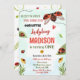 Petite coccinelle 1ère invitation d'anniversaire Fille d'amour fille de bogue femme de bogue invitation été invitation thème d'insecte. Buzz sur le dessus pour un peu de plaisir! Cette mignonne invitation pour les filles fête d'anniversaire avec pois de pois ladybugs, fleurs et un peu de verdure autour. Modifiez simplement ce modèle facile à utiliser dans le menu Personnaliser pour le rendre spécial.