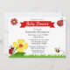 Cute lady bug and bee baby shower invitation with a ladybug climbing a yellow flower. Little bee buzzing in green grass. Back of card is lady bugs. Customize with your party details.
