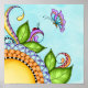 Decorate your room or any personal space that you wish with this wonderful Ladybug and Butterfly Doodle Flower Poster. Ladybug and Butterfly Doodle Flower is a charming and whimsical large doodle flower with leaves accented by a ladybug and butterfly created by Debi Payne Designs. The doodle flower has a large yellow centre surrounded by a thin black and white check border. The flower has two rows of overlapping tiny orange petals inside overlapping lavender loops. Stemming from the flower are four green leaves and four multicolored swirls with patterns. Sitting on top one of the swirls is a little ladybug. Floating in the air, as if talking to the ladybug, is a lovely butterfly in shades of purple, rose and teal. The entire design is over a teal watercolor wash background.